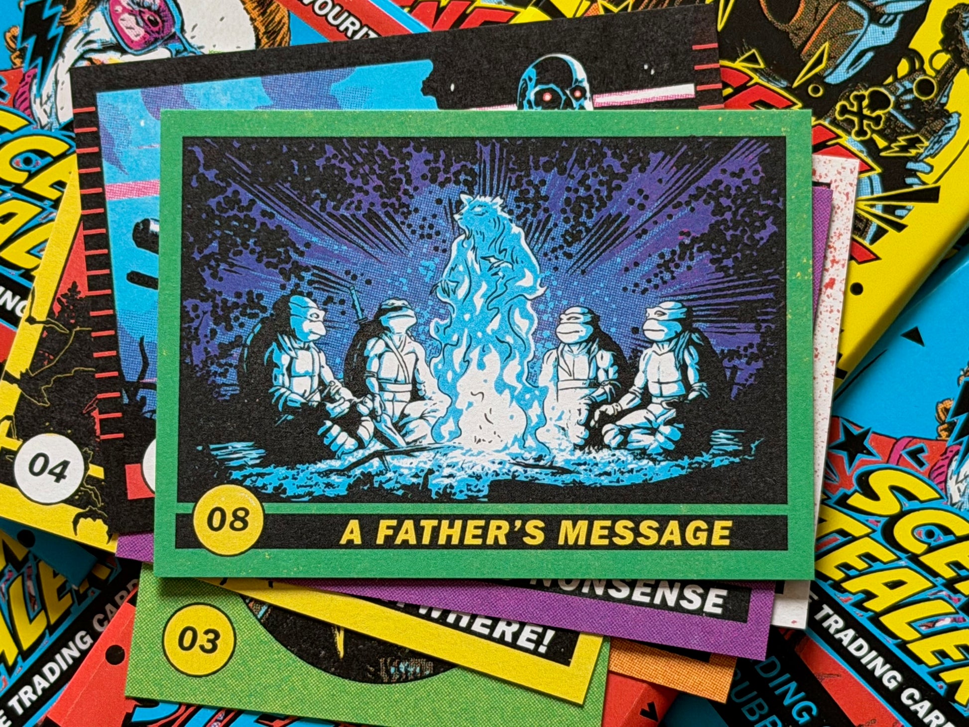One pack of Scene Stealers Movie Trading Cards! Each pack features 6 random cards. This initial wave features a total of 12 cards (and one secret foil chase card!)